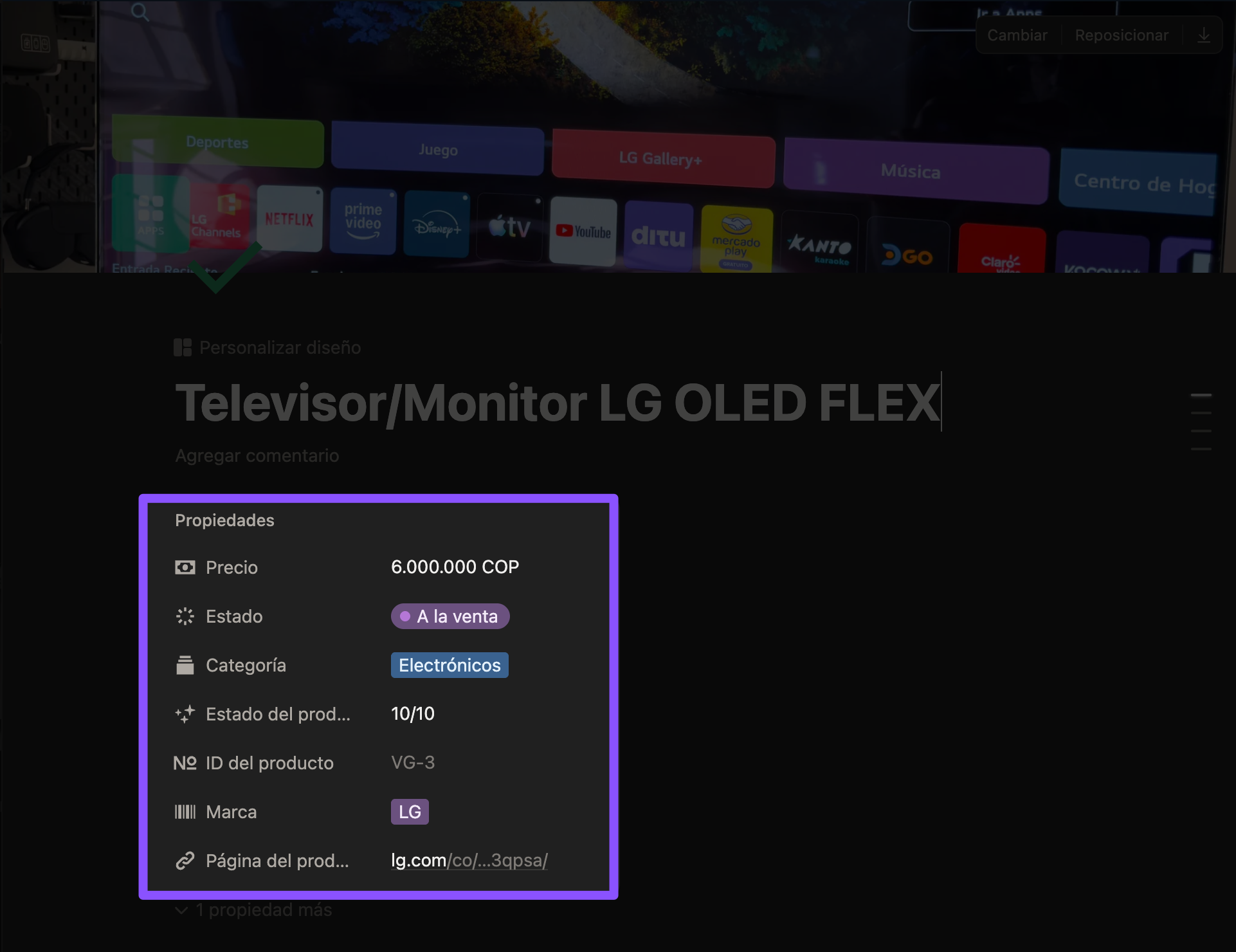 Para este ejemplo, voy a usar la página del televisor/monitor LG OLED Flex.
